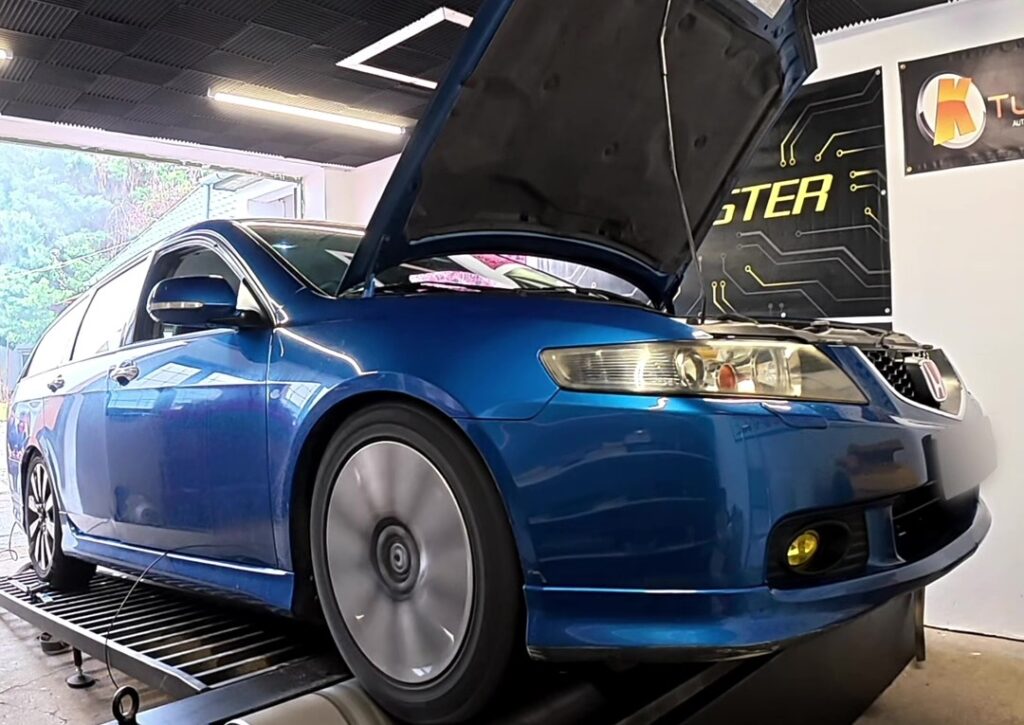 A direktszűrőnek köszönhetően már gyári programmal 197LE-t és 220Nm-t tudott az autó. A programozás során 200LE-t és 230Nm-t sikerült kihozni, ami bár csúcsban nem sok, de 2500-as fordulatnál +5LE és +15Nm, a gyári VTEC váltásnál pedig +22LE és +28Nm. Tiltás 7600-ig lett kitolva és kapott kapcsolható pops and bangs-et.