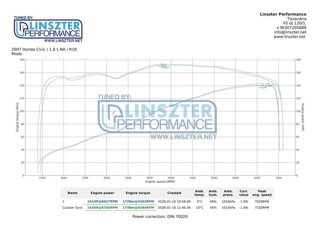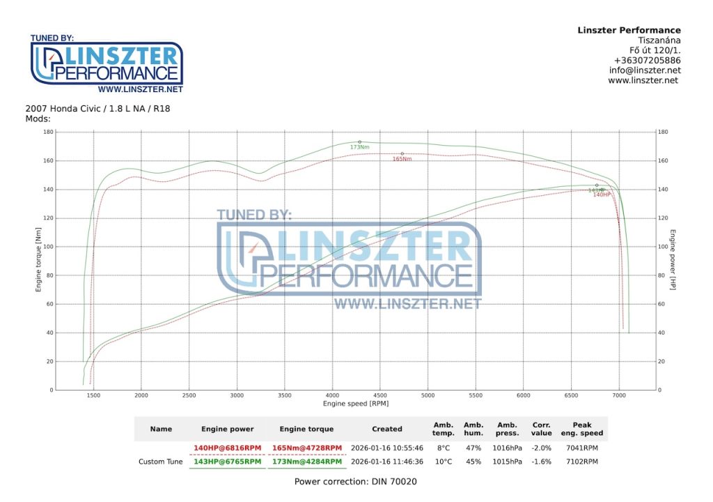 A piros görbén az utcáról beeset állapot, a kék ugyanaz a program, alaphelyzetbe állított értékekkel. Látható, hogy teljes tartományban van különbség, csúcsban 7Nm. Ilyenkor előszeretettel használják szándékosan a rosszabb értéket, hisz így nagyobb különbség érhető el.